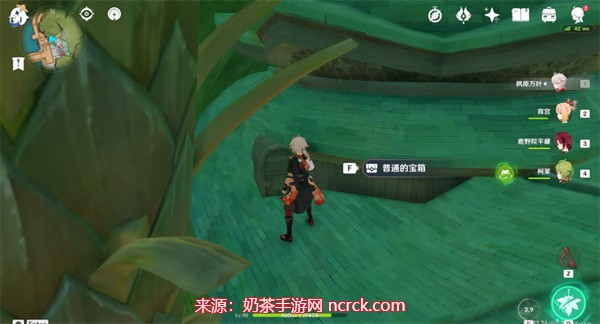 2、在与商人对话后,玩家需攀爬附近的建筑,寻找到屋顶的隐秘处。那里藏有一只普通宝箱,打开后即可获得关键线索。