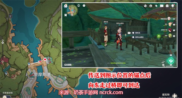 1、玩家首先传送至奥摩斯港。在此地,寻找并与两位商人对话,即可触发任务。
