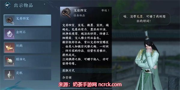 3、在那里,购入文房四宝,这将为你打开与宋乐词这一关键人物的交往之门。