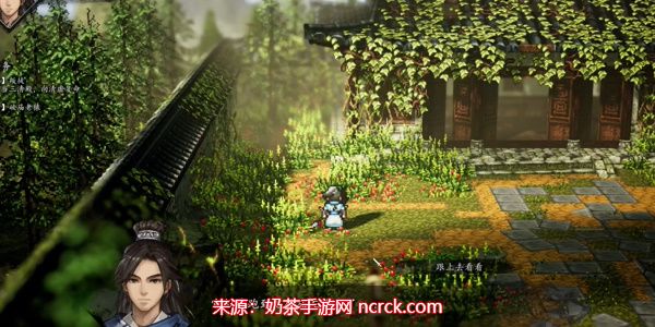 3、战斗结束之后猿猴就会消失,我们点击【跟上去看看】,然后能够在左侧树下可以发现老猿。