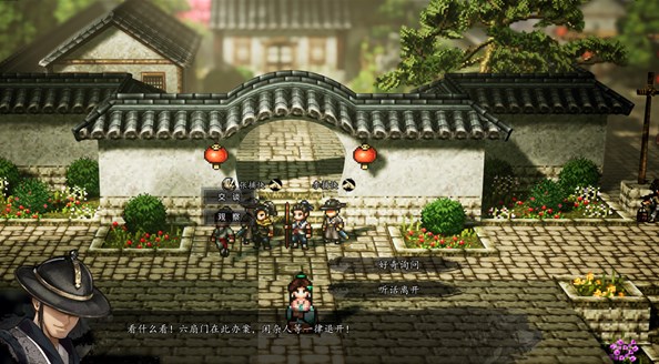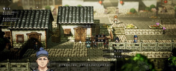 任务流程:城门口下方小妹妹对话,到药铺左边桌子旁自动触发,接着在图中位置树下找到NPC,选择哄她会被她骗。