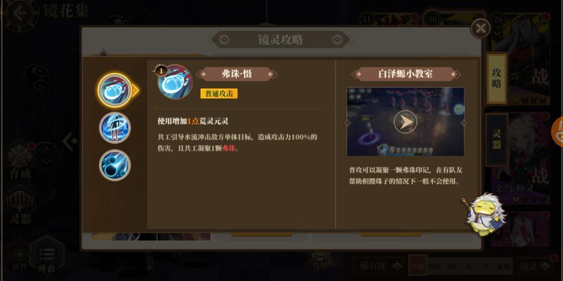 攒积攒三颗珠子,攻击敌方单体目标,每颗珠子造成110%的伤害,但伤害会递减25%。如果九颗珠子全部命中同一目标,将造成462%的伤害。这个技能满级以后,如果击杀敌方单位后剩下的珠子会自动攻击血量最低的单位,非常适合与队友协作进行击杀,不论是PVP还是PVE都非常实用。