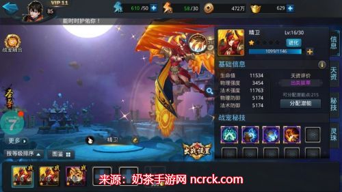 奎木狼:近战战士,能够通过技能打断敌方阵型,提供群体增益效果,以及无敌大招造成大量伤害。