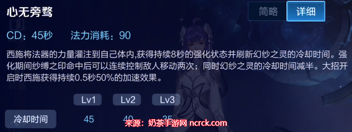 三技能: 刷新二技能并在8秒内将二技能冷却时间减半。在此期间,一技能击中对方将控制效果增至2次。使用三技能时,西施还会获得0.5秒的移动速度加成。