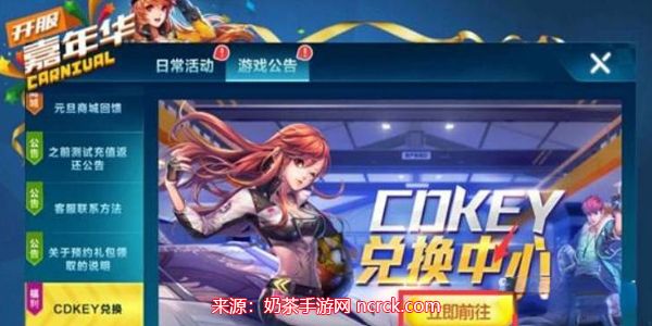 3、在游戏公告的左边栏找到CDKEY兑换选项,点击后在弹出的界面中输入您所拥有的兑换码即可。