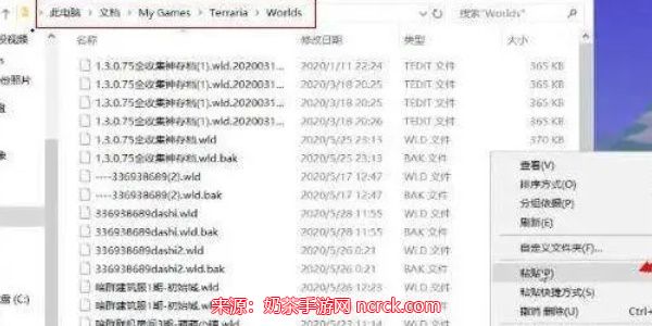 地图移动:将 .wld 文件粘贴到相应的文件夹内。