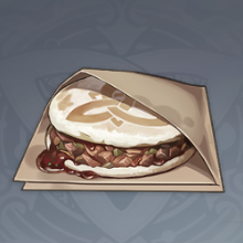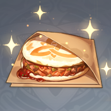 介绍:包裹大块肉馅的饼食。饼酥肉嫩,饱满多汁。只一口便能陶醉,有着即使摩拉在眼前也让人不愿意分心拾取的传奇美味。