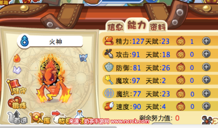 1、首先我们需要在背包中准备一只满级的火神作为进化的基础宠物。