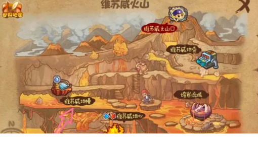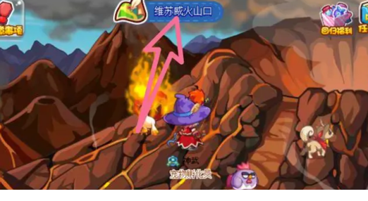 3、来到维苏维火山口之后我们再点击上方打开小地图。