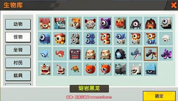 3.然后选择生物工具,在区域里面点击新建生物,从生物栏里可以看到有很多生物,这里选择怪物一栏,在里面可以看到三种不同的黑龙,我们可以自己选择想要召唤的黑龙。