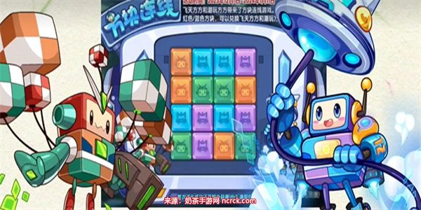 2、在活动中玩家需要先帮助两个方块人玩方块连线的小游戏来获得不同的颜色的方块;