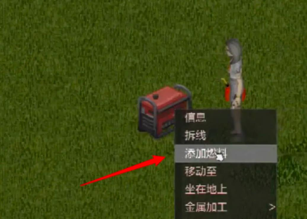 3、接线后右键点击发电机选择添加燃料。
