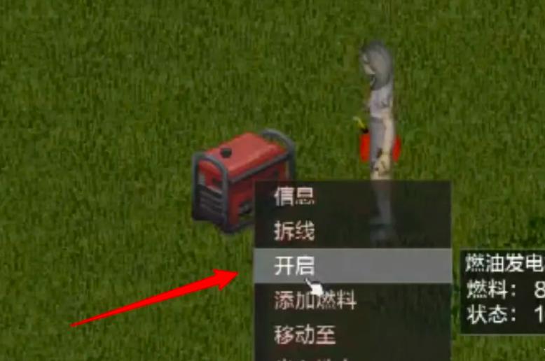 4、右键点击发电机选择开启即可接通电了。