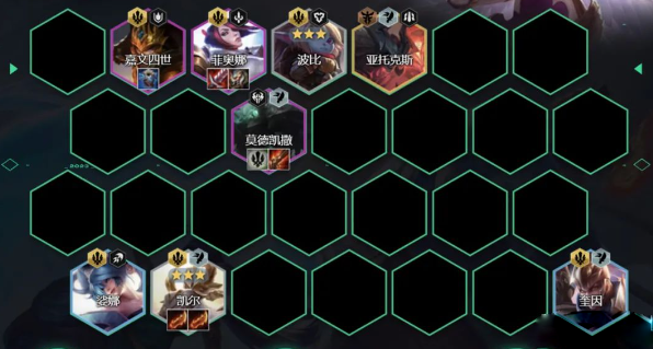 1、阵容组成:凯尔、奎因、波比/加里奥、剑姬、皇子、娑娜、莫德凯撒、亚托克斯