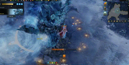 BOSS即将进入3阶段的时候,会释放超大范围的雪暴天气,此时位于BOSS前后左右四个方位,地上会冒出4个喷泉。此时一定要站在喷泉上,不然该技能伤害巨高,一定会造成减员的。