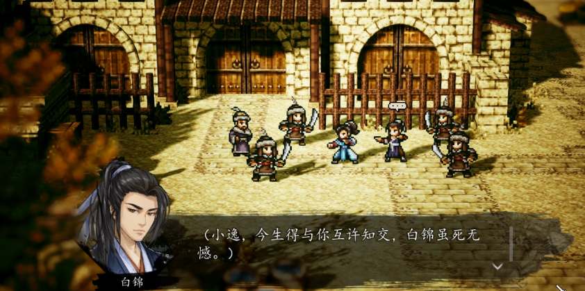 1、在剧情故事中,白锦会说要自己看风景然后离开队伍,但其实是自己去偷情报了。如果玩家继续做任务,就会接到杀传令兵拿情报的任务,从而把白锦杀死。