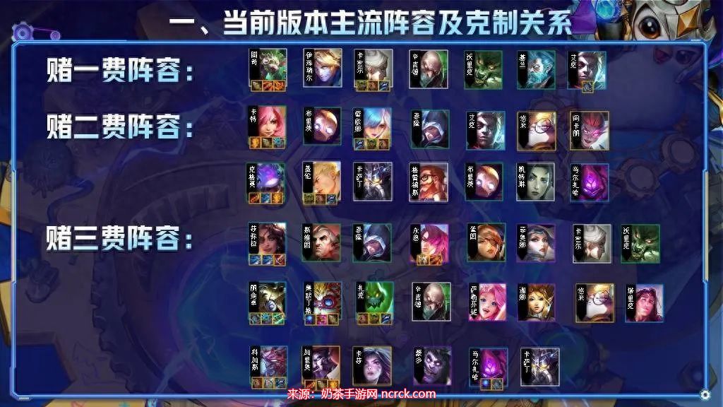 名流剑姬阵容:克制脆皮阵容和赌刺卡特,但对付前排很硬的阵容如龙牙薇古斯较为困难,其他阵容视质量而定。